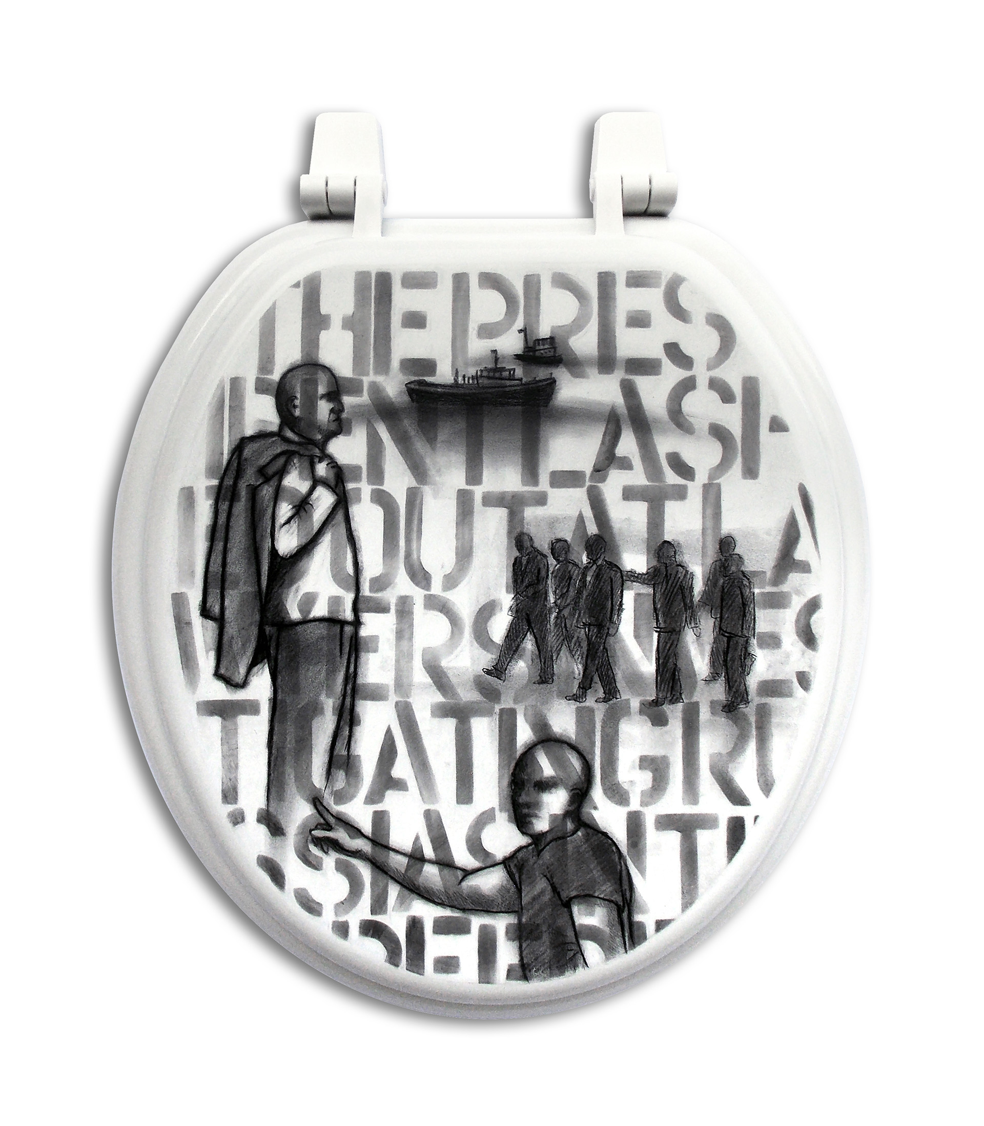 Technique: Wax pencil on wooden toilet lids